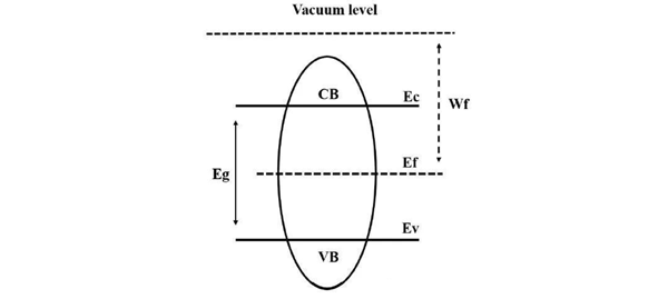 从半导体的能级示意图可以根据Ev及Eg从而计算Ec。